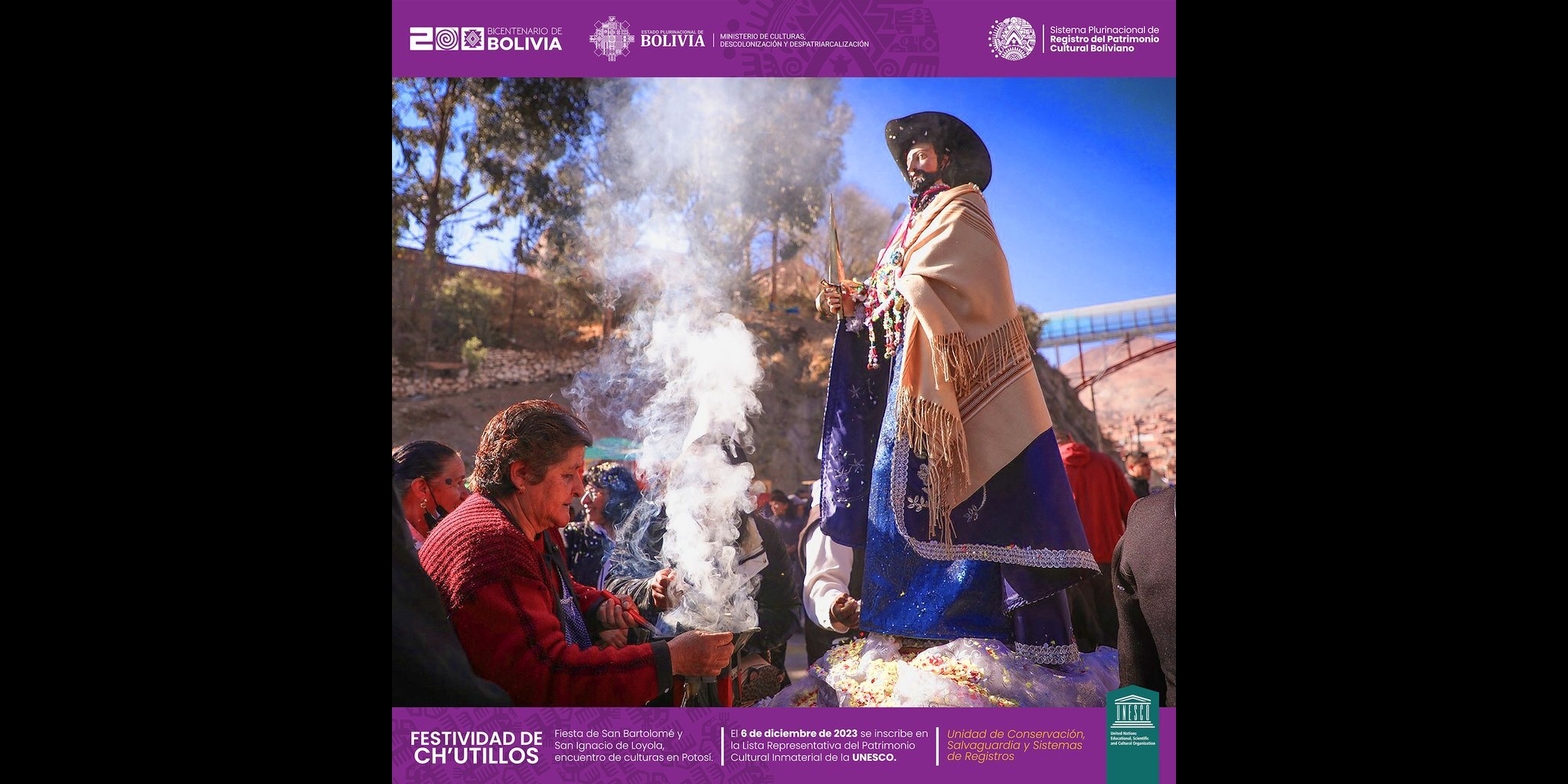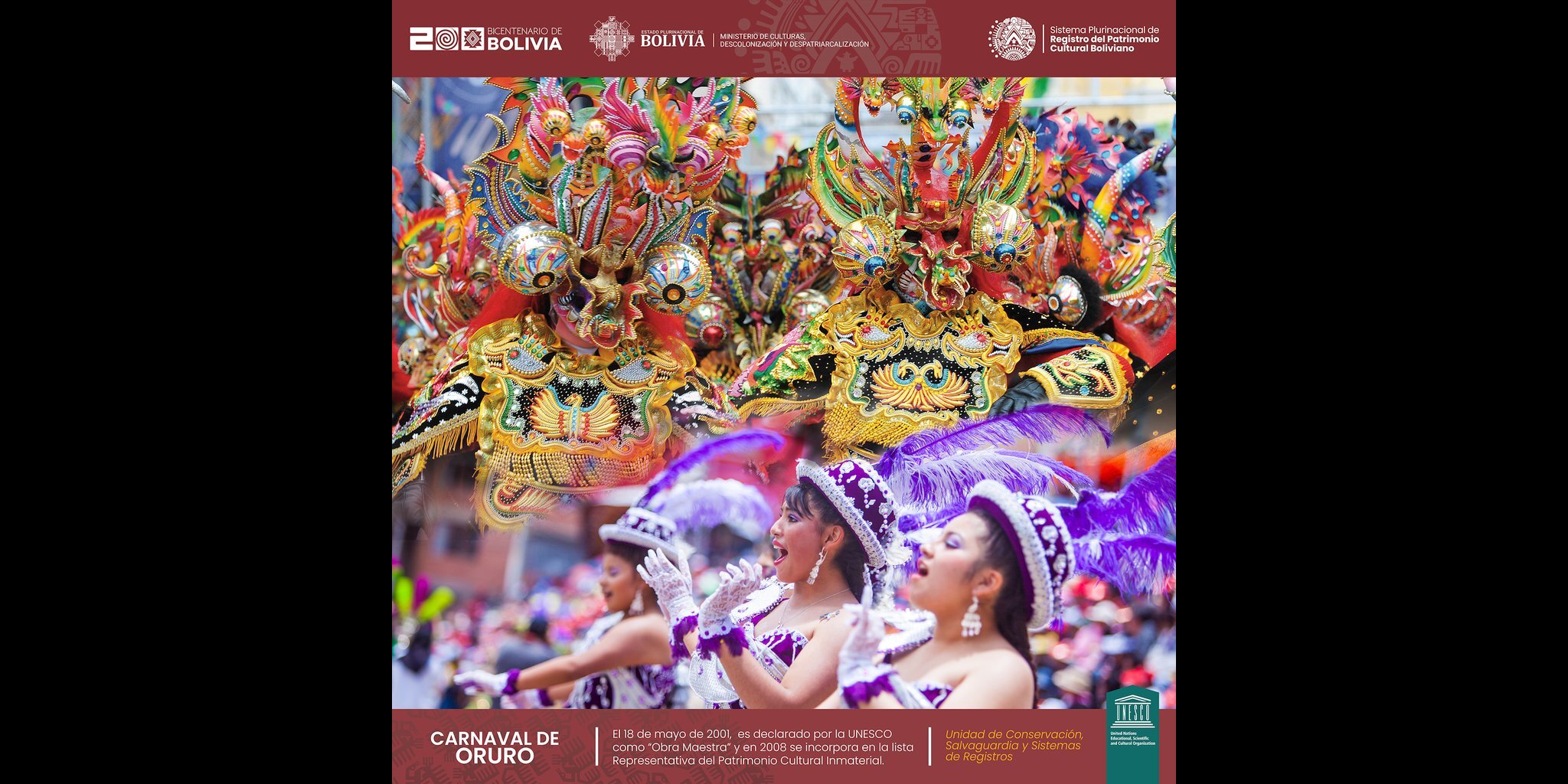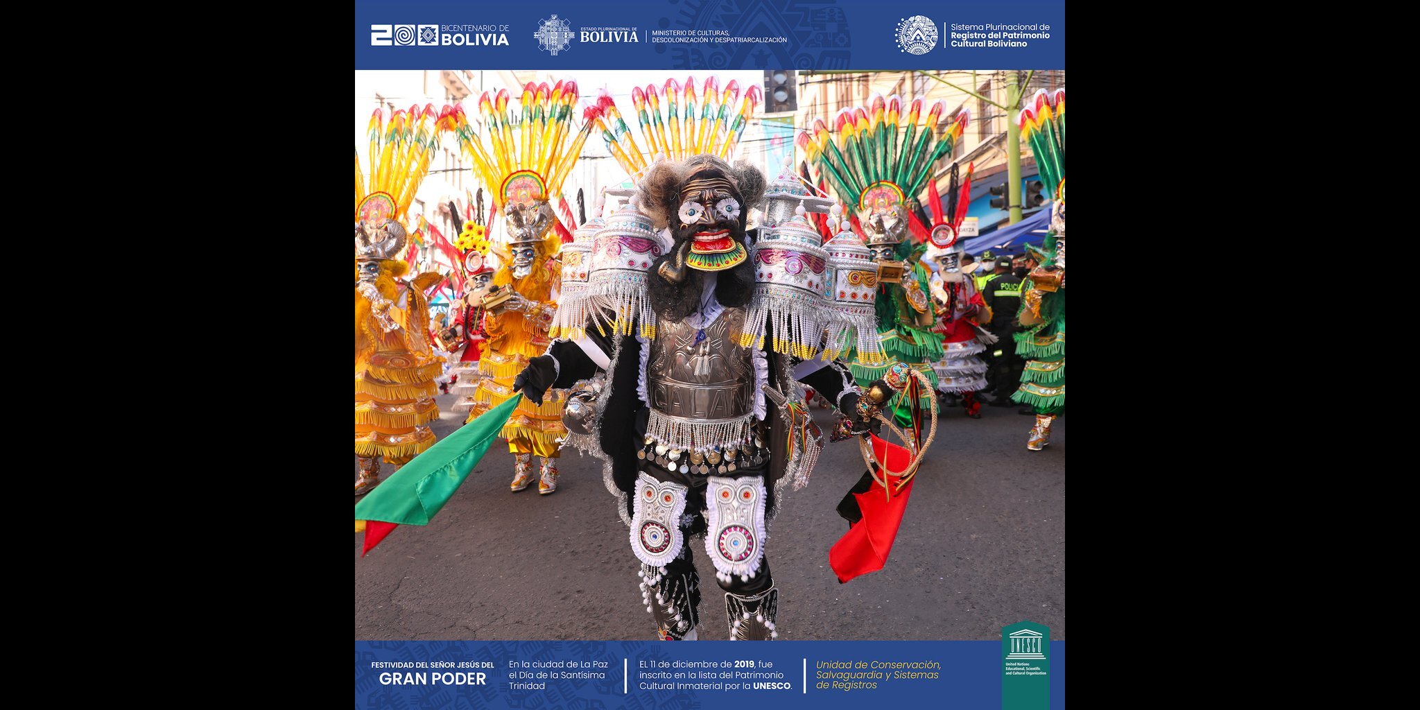 La Misión del Estado Plurinacional de Bolivia para el patrimonio cultural es registrar, fortalecer, salvaguardar, custodiar, conservar, investigar y difundir el patrimonio cultural material e inmaterial, así como promover la diversidad cultural para lograr una sociedad equitativa y descolonizada, según el Museo Nacional de Arte y la Fundación Cultural del Banco Central de Bolivia. La Visión es convertirse en un referente nacional en la gestión cultural que consolide una sociedad intercultural, descolonizada y despatriarcalizada, asegurando el acceso democrático a los bienes culturales para todos y contribuyendo al 'Vivir Bien', de acuerdo con la Fundación Cultural del Banco Central de Bolivia.