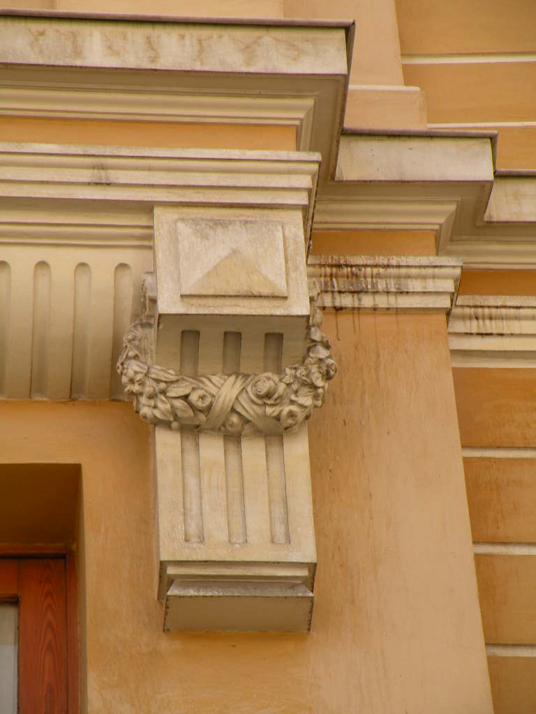 Ornamento moldeado en yeso en forma de coronas de flores y frutas, atadas por lados. Se utiliza con frecuenica en frisos y paneles.