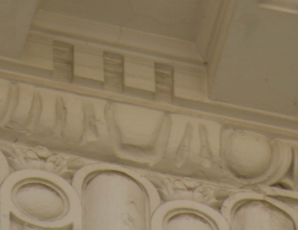 Moldura situada en la parte superior de la cornisa e inmediatamente debajo del tejado. Se llama también Moldura de cornisa o lecho, cuando la moldura de acabado se sitúa en los bordes del alero.