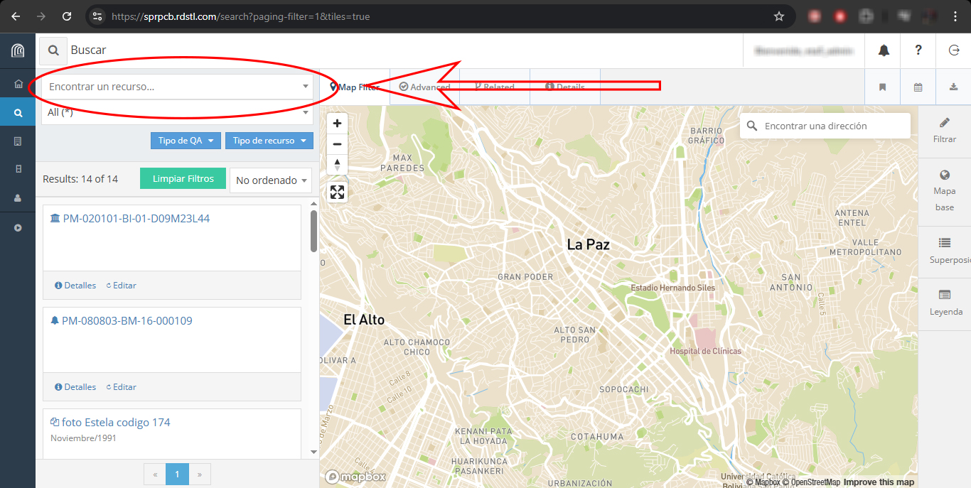 Para realizar una búsqueda sobre algun recurso seguimos los sgtes pasos: